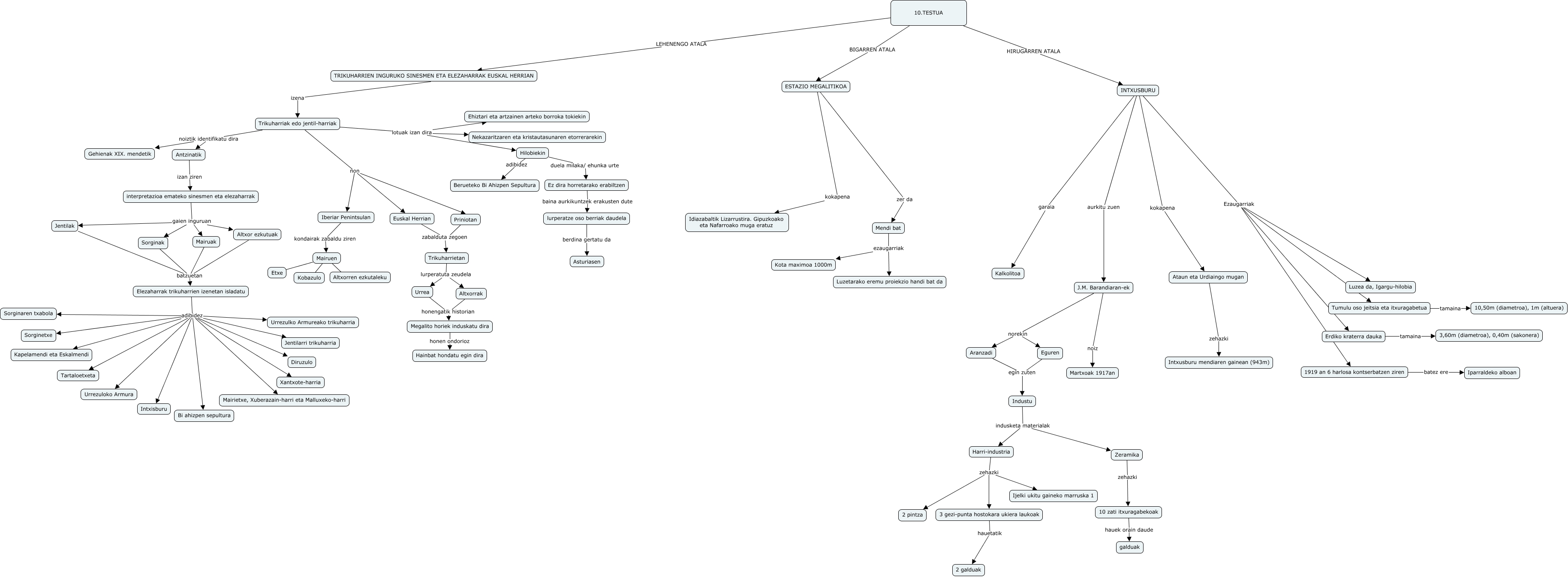 Este Cmap, tiene información relacionada con: KM 7. TALDEA, Trikuharriak edo jentil-harriak noiztik identifikatu dira Gehienak XIX. mendetik, 10.TESTUA HIRUGARREN ATALA INTXUSBURU, interpretazioa emateko sinesmen eta elezaharrak gaien inguruan Sorginak, Zeramika zehazki 10 zati itxuragabekoak, Harri-industria zehazki Ijelki ukitu gaineko marruska 1, Elezaharrak trikuharrien izenetan isladatu adibidez Sorginaren txabola, Mendi bat ezaugarriak Kota maximoa 1000m, Antzinatik izan ziren interpretazioa emateko sinesmen eta elezaharrak, Aranzadi egin zuten Industu, interpretazioa emateko sinesmen eta elezaharrak gaien inguruan Jentilak, Harri-industria zehazki 3 gezi-punta hostokara ukiera laukoak, 1919 an 6 harlosa kontserbatzen ziren batez ere Iparraldeko alboan, interpretazioa emateko sinesmen eta elezaharrak gaien inguruan Mairuak, Harri-industria zehazki 2 pintza, Elezaharrak trikuharrien izenetan isladatu adibidez Kapelamendi eta Eskalmendi, Mendi bat ezaugarriak Luzetarako eremu proiekzio handi bat da, Trikuharriak edo jentil-harriak lotuak izan dira Nekazaritzaren eta kristautasunaren etorrerarekin, Elezaharrak trikuharrien izenetan isladatu adibidez Sorginetxe, Megalito horiek induskatu dira honen ondorioz Hainbat hondatu egin dira, 3 gezi-punta hostokara ukiera laukoak hauetatik 2 galduak